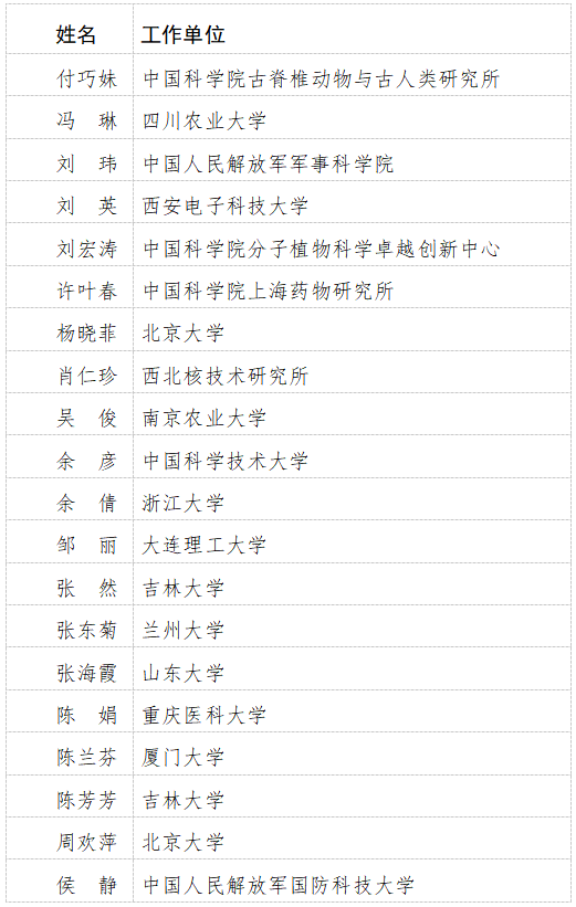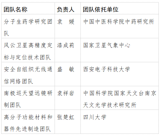 第十七届中国青年女科学家奖团队奖获奖团队名单