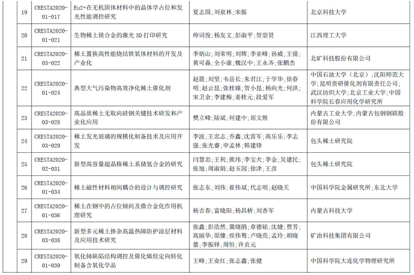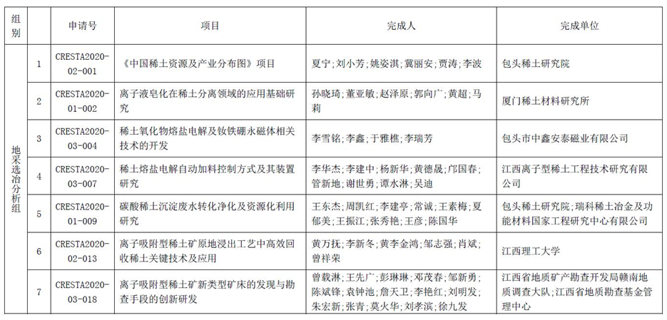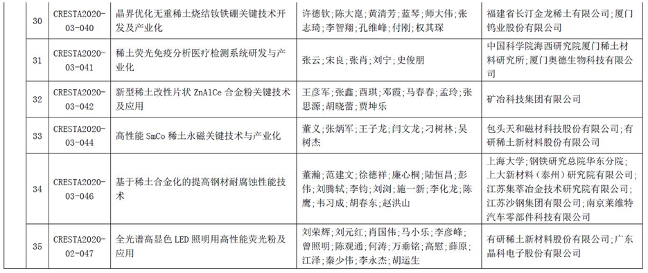 稀土科学技术奖2020年申报工作已于2020年6月30日截止,共有35个申报项目通过形式审查,其中地采选冶分析类14项,材料类21项,现予公示。 公示期:2020年7月20日-7月30日。 公示期内,面向社会征求对申报项目和相关单位及完成人的异议。提出异议的单位需要加盖公章,异议人需要签署真实姓名,并提供有效联系方式。 联系人:李平,韩晓英 地 址:北京市高梁桥斜街13号院 中国稀土学会 邮 编:100081 电 话:010-62188304 传真:010-62173501 电子邮件:csre@cs-re.org.cn
