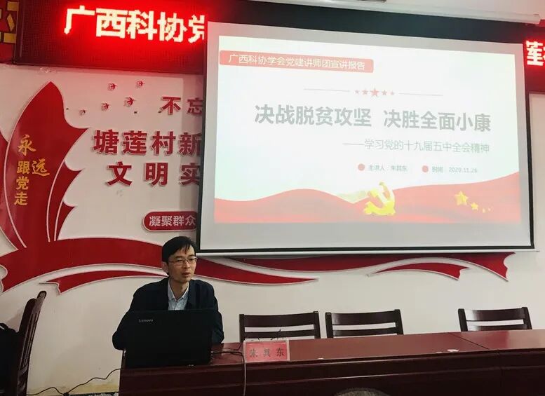 广西科协党组成员、副主席、科技社团党委书记朱其东到扶贫联系点塘莲村宣讲十九届五中全会精神