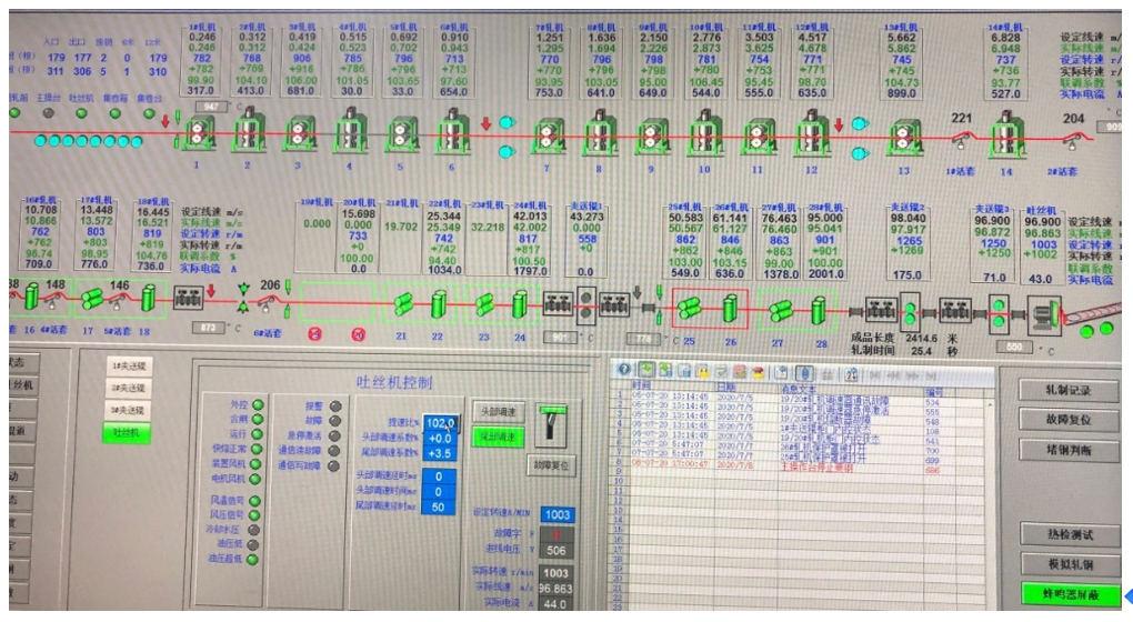 4、开发了自适应的动态速降补偿技术,消除了高速轧制过程中咬钢速降对轧制稳定性的影响;开发了多机架速度同步控制技术,替代了传统集中传动精轧机的机械同步,保证了高速稳定生产。