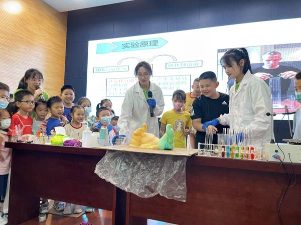 为展示化学实验的神奇与魅力,激发青少年学习化学的兴趣和热情,在更多中小学学生心中种下热爱化学的种子,7月9日下午,“宜”起学科学——第二季“化学魔法”趣味科普公益课堂在安庆科技馆正式开课。来自安庆市区的200余名中小学生参加活动。