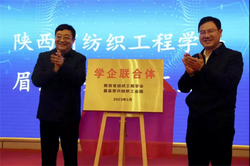 论坛开幕式上,省科协与眉县共建“科创中国”陕西智能制造区域科技服务团(眉县常兴纺织工业园)基层协作服务站揭牌,陕西省纺织工程学会与眉县常兴纺织工业园“学企联合体”揭牌。中国纺织工程学会副理事长、陕西省纺织工程学会理事长李鹏飞受聘为眉县纺织服装产业链首席专家。
