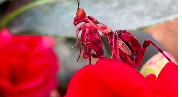 罕见的小可爱!红色眼斑螳螂现身云南宁洱