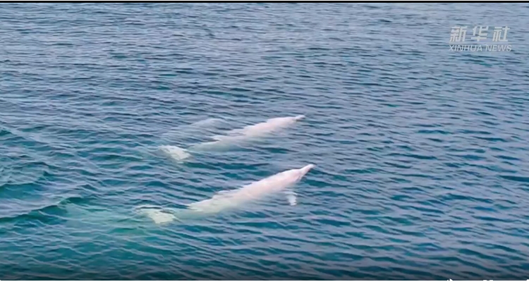 成群中华白海豚遨游广东雷州湾