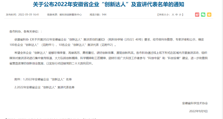 为组织动员广大科技工作者积极参与“科创安徽”建设,激发企业科技工作者创新活力、提升企业技术创新能力,根据中国科协关于开展2022年“创新达人”宣讲活动的部署,省科协决定开展2022年安徽省企业“创新达人”宣讲活动