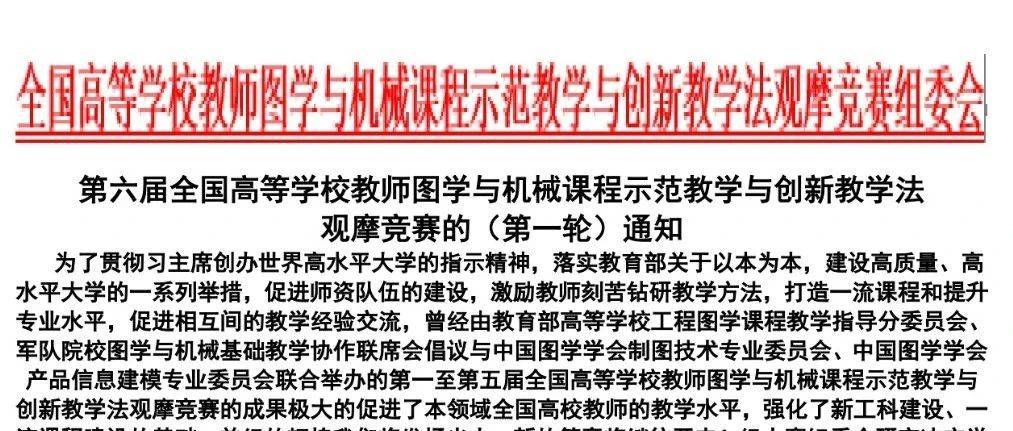 竞赛通知 | 第六届全国高等学校教师图学与机械课程示范教学与创新教学法 观摩竞赛的(第一轮)通知